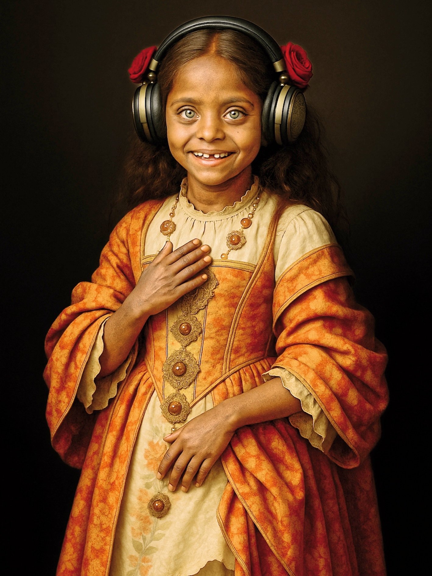 Musique d’Opéra: il silenzio dell’ascolto Un viaggio visivo nell’universo di Luciano Di Gregorio Con la serie Iconoclastica, Luciano Di Gregorio ha intrapreso un percorso che mette in discussione, celebra e al tempo stesso reinventa il linguaggio dell’immagine, restituendo alla fotografia la forza di un’icona contemporanea. Tra le opere più emblematiche, Musique d’Opéra si distingue come una riflessione poetica sull’ascolto e sulla sacralità dell’esperienza estetica. L’immagine raffigura una giovane figura femminile dai capelli rossi, avvolta in un abito semplice dal sapore antico. Le pieghe della veste e la posa delle mani, composte ma vibranti di tensione interiore, evocano immediatamente la pittura rinascimentale e barocca: i ritratti di scuola fiamminga, le Madonne quattrocentesche, la delicatezza dei volti preraffaelliti. Eppure, al centro della composizione, l’elemento dirompente: un paio di cuffie monumentali, ornate come reliquiari, racchiudono la testa della giovane, fiorita da rose rosse che emergono come corone simboliche. È qui che Di Gregorio mette in atto la sua iconoclastia: accosta l’immaginario sacro e quello profano, il linguaggio della tradizione pittorica e l’oggetto tecnologico della modernità. Le cuffie, di solito simbolo di isolamento e consumo rapido di suoni, si trasformano in strumento rituale, quasi sacramentale. Non più accessorio quotidiano, ma reliquia preziosa, capace di trasmettere non solo musica, ma un’esperienza spirituale. Il titolo Musique d’Opéra sottolinea l’intensità drammatica del gesto: non si tratta di un ascolto leggero o distratto, ma di un’immersione totale, di una partecipazione interiore che richiama la solennità del melodramma. Lo sguardo assorto della ragazza, sospeso tra malinconia e contemplazione, ci consegna l’immagine di un’anima catturata dal potere evocativo della musica. L’arte visiva e quella sonora qui si incontrano, generando un cortocircuito sinestetico: vediamo il silenzio, ma percepiamo l’eco del suono. Dal punto di vista estetico, Di Gregorio dimostra una padronanza assoluta della luce e del colore. I toni caldi, che oscillano tra l’ocra e il bruno, costruiscono un’atmosfera di intimità e raccoglimento, mentre i dettagli delle cuffie, finemente incisi, dialogano con la texture dei capelli e con le rose, in un raffinato gioco di corrispondenze materiche. Ogni elemento sembra sospeso in una dimensione fuori dal tempo, dove il passato e il presente convivono senza contraddirsi. Musique d’Opéra diventa così un’icona della contemporaneità: un ritratto che, pur attingendo al patrimonio figurativo della storia dell’arte, parla con urgenza al nostro presente. In un’epoca in cui l’ascolto è sempre più frammentato, l’artista ci invita a recuperare la profondità di un’esperienza estetica che sia totalizzante, trasformativa, quasi mistica. Luciano Di Gregorio, con la sua Iconoclastica, non distrugge le immagini: le reinventa, le interroga, le mette a confronto con la nostra epoca digitale, offrendo al pubblico un nuovo pantheon di icone laiche. Musique d’Opéra ne è un esempio folgorante: una fotografia che si fa pittura, un ritratto che si fa reliquia, un volto che si fa specchio di un’esperienza universale.