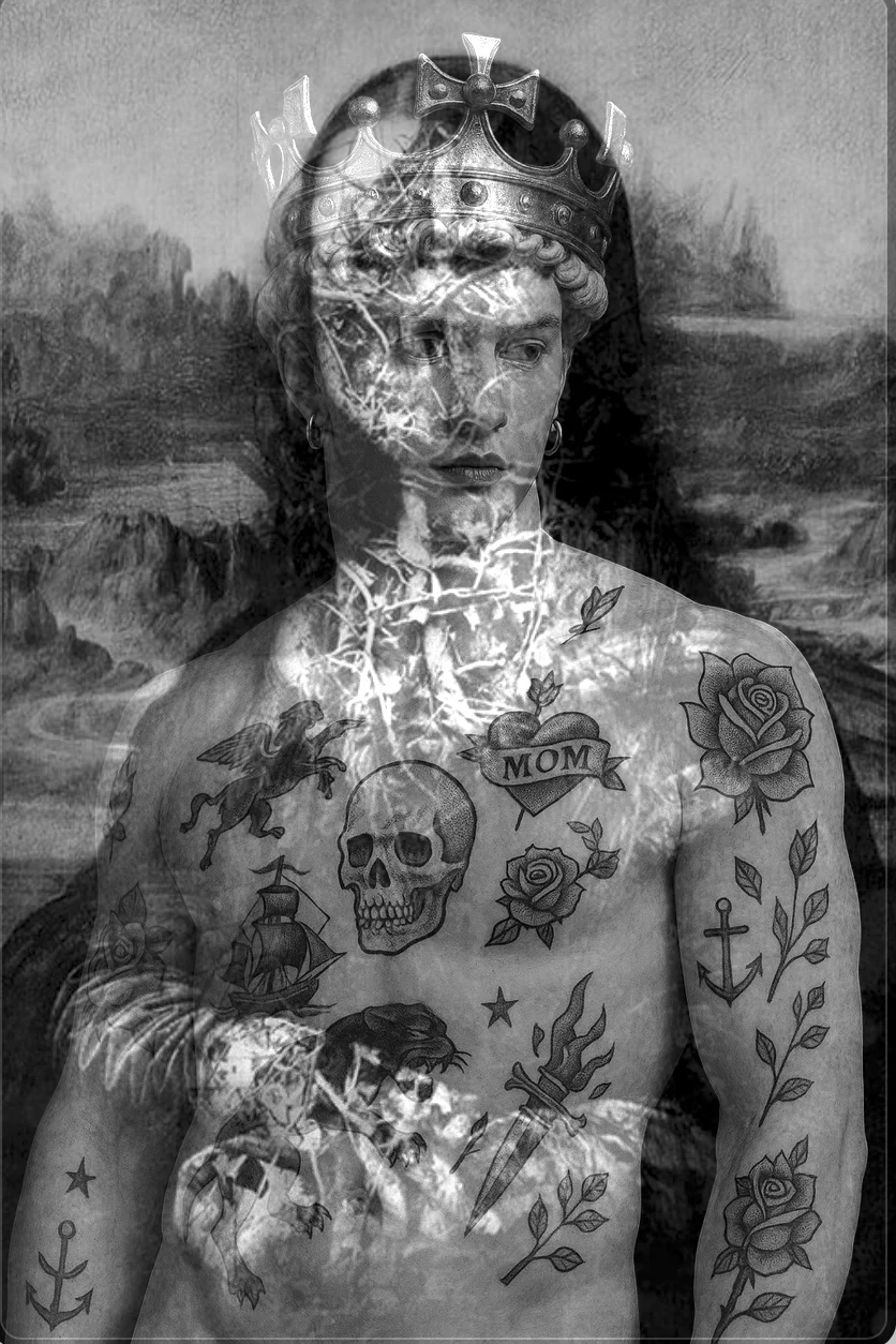 L’immagine è monocroma, come se il colore stesso fosse stato prosciugato dalla realtà. È un bianco e nero che richiama la fotografia della guerra, la pittura sacra, i manifesti del lutto. Eppure ogni dettaglio — la stoffa, il volto, le mani — è reso con una precisione quasi pittorica, che richiama la scuola fiamminga tanto quanto l’iperrealismo novecentesco. Un contrasto tra la bellezza formale e l’orrore sottinteso che paralizza l’osservatore.
